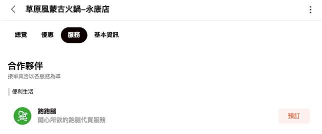 跑跑腿 北部地區立即點擊商家資訊卡下的服務按鈕!