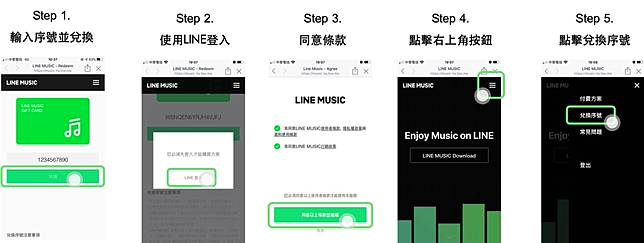 8. 若您的LINE帳號已綁有其他LINE MUSIC方案,於其他方案期間將無法兌換此組免費序號,請於該方案結束後及兌換期限前再行兌換此組序號。