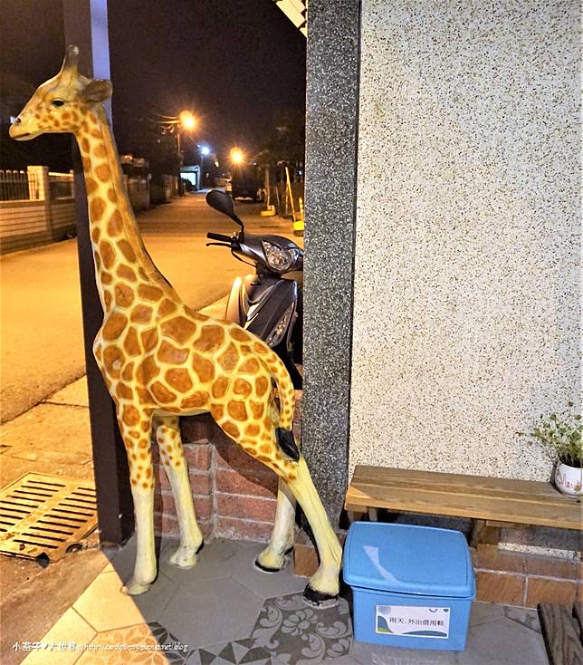 晚上七八點到雲朵朵,一接近民宿就看到一隻長頸鹿在歡迎我們!!!! 我超愛長頸鹿啊~太可愛了