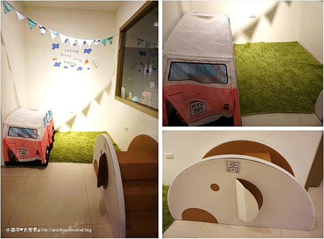 小孩的遊戲區~有草皮可以讓寶貝滾來滾去,車子裡有很多小玩具,可以爬進車子裡玩,還有小朋友超級愛可以玩一個上午的溜滑梯~~~