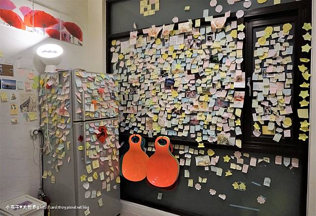 冰箱旁滿滿的都是住宿完旅客留下的感謝便利貼!!!