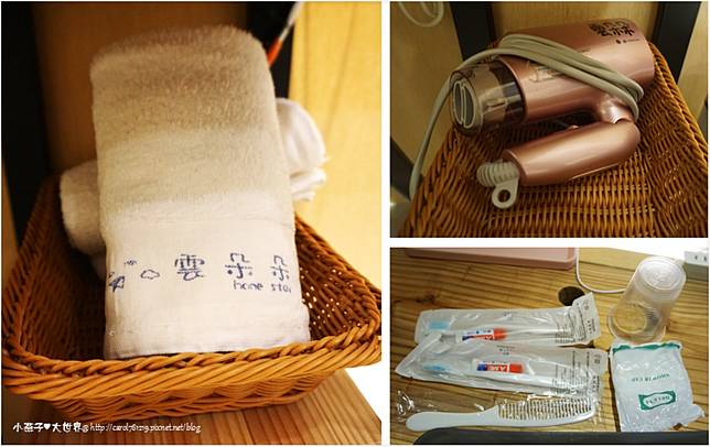 這真的太可愛了~~連毛巾上都有雲朵朵的標誌超用心,提供牙刷牙膏、浴帽、梳子