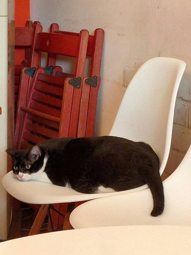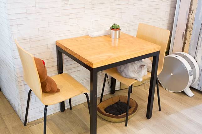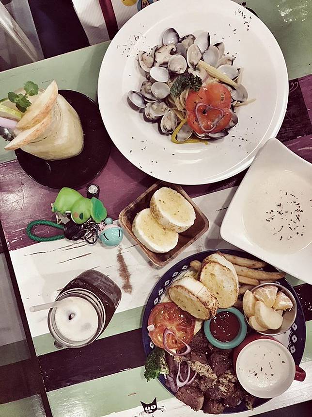 這家店可以說是網美的打卡熱點,滿牆的綠色植物、木質的桌椅擺設、乾燥花與昏黃的燈光,無一不是時下相當受歡迎的網美元素。夜晚時分店內透出的溫暖燈光,彷彿童話故事中住著睿智老貓的林中小屋,讓迷途的旅人能稍作歇腳、喝杯熱茶、吃份餐點,聆聽屬於貓咪的故事。這間店曾經被食尚玩家報導過,不過來店顧客可不只是被這美麗裝潢與可愛的貓咪吸引,餐點也是一等一的美味。當然,來貓咪餐廳,看貓、陪貓玩才是真正的重點啊。