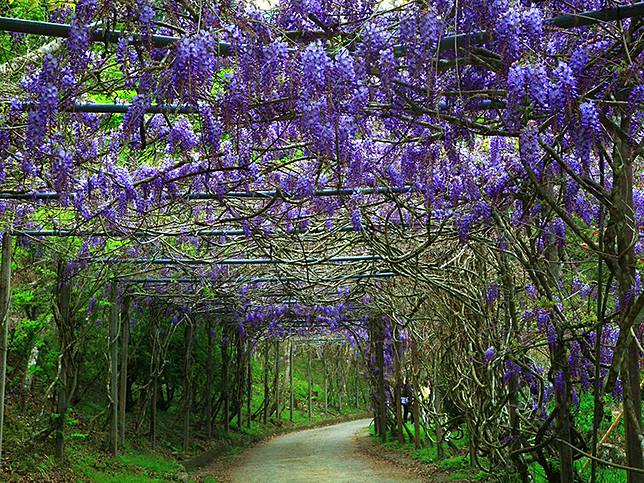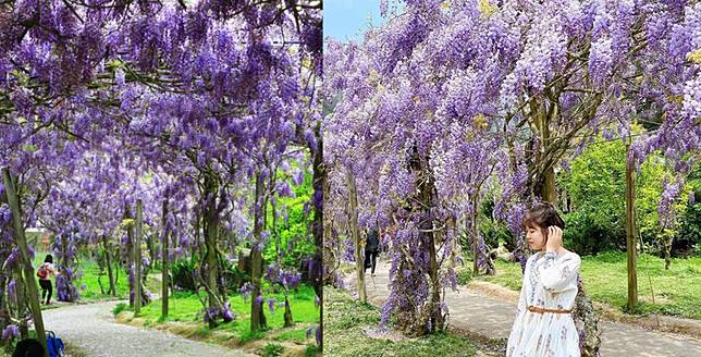 而除了被譽為「花中之王」的牡丹花迎來盛開,還有浪漫唯美的紫藤花也已大爆發,漫步在紫藤花盛開的花架下,享受著紫色瀑布垂吊而下的美景,有別於牡丹花的豔麗,紫藤花更顯得浪漫唯美,目前預計花期可維持到4月中旬左右,想來賞花的民眾可要把握時機!