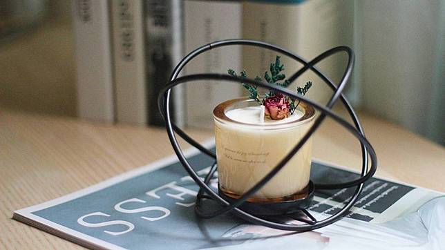 挑選自己喜歡的精油製成的大豆蠟燭,搭配上乾燥花以及造型鐵器讓蠟燭增添了不少美感,沒有點燃前還能當居家擺飾!