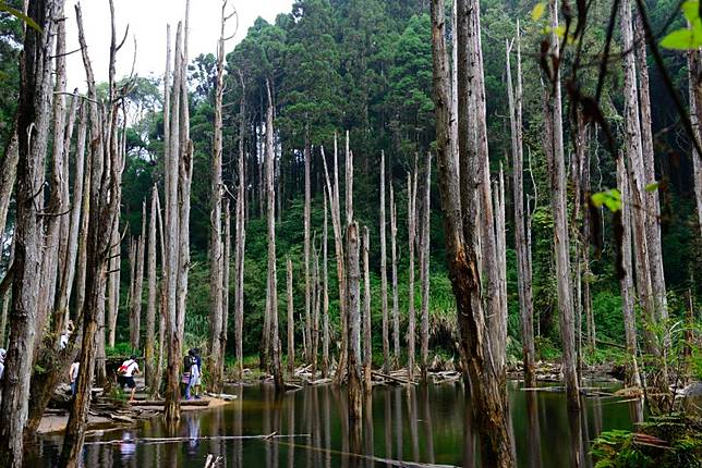 忘憂森林位於接近杉林溪附近的豬彎,因南投九二一地震後,此地積水變成一處沼澤濕地,讓一大片杉木泡在水裡而枯死,形成今日的忘憂森林。由於身處高海拔,霧氣千變萬化,有時上一秒還是清晰下一秒就被霧氣包圍,也獲得「迷霧森林」的稱號,朦朧的美景讓人彷彿置身於魔幻場景中,散發既唯美又有點惆悵的氛圍。
