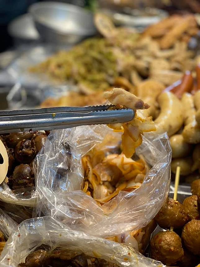 三合院的豬耳朵也是一絕,鹹香入味又有微微的煙燻口感,配飯配酒都很適合。攤位的品項眾多,從米腸、百頁、貢丸到雞心、豆皮應有盡有,但每次都能賣到一點不剩,顧客像風捲殘雲般搶購一空,想一嚐這傳奇滋味的人可要來早了,不然只能望著空空如也的攤位嘆氣了。