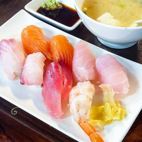 生魚握壽司各個飽滿,魚肉的鮮甜加上酸度剛好的醋飯,提升了整體味道的層次。綜合生魚片有鮭魚、旗魚、鮪魚等,每片都有厚度,又有入口即化的新鮮。