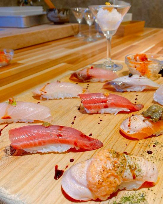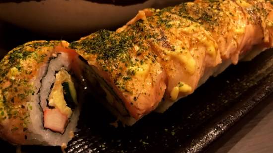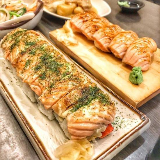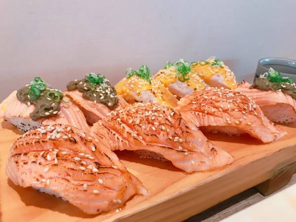 經典代表非毛毛蟲壽司莫屬,紮實的壽司餡料,頂端鋪一層鮭魚後再炙燒,撒上日式海苔粉,可以品嘗到鮭魚油脂在口內散發,配上口感剛剛好的醋飯,真的會讓人想一吃再吃、吃過就念念不忘的好滋味!