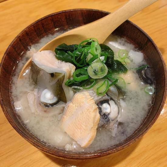 看看圖片裡味增湯的用料,只能用豐富用心來形容,選用日本關西的白味噌、生魚片等級魚骨還有蘿蔔洋蔥海帶,最後撒上蔥花點綴,還能免費再續一碗,是不是很令人心動!