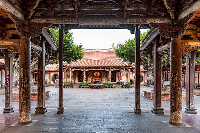 鹿港龍山寺為台灣少數保存完整、規模最大的清代建築,始建於一七八六年,寺內的觀音佛像源自泉州的泉安龍山寺,經歷清代、日治時期改為本願寺分寺,主殿改供俸阿彌陀佛,戰後重新改奉觀音,方為今日所見之樣貌。龍山寺戲台上方的八卦藻井,建於一八三一年,為臺灣歷史最悠久的藻井,八卦樣式除鎮邪的功用外,在表演戲曲時亦能產生共鳴之效果。喜歡古建築的朋友不可錯過。