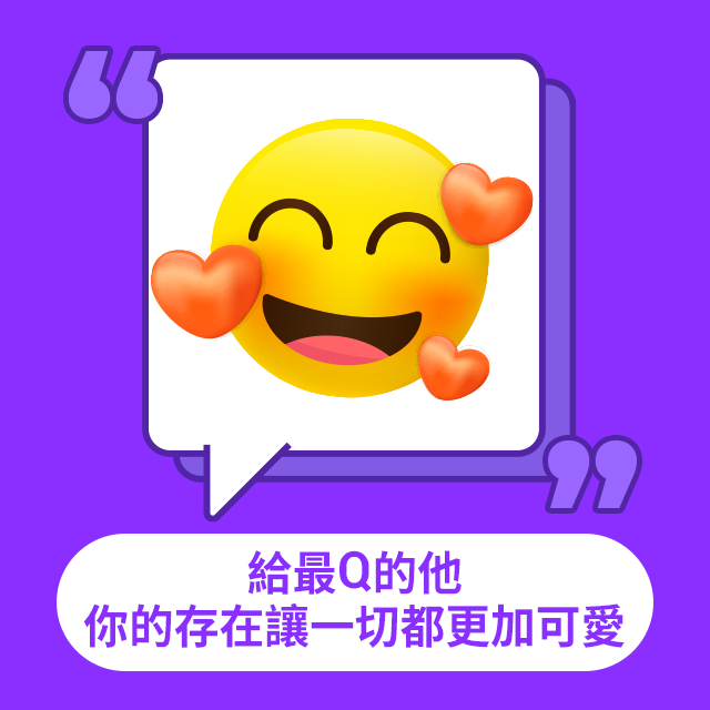 2. 電子禮物卡片:[Emoji心情] 給最Q的他☆你的存在讓一切都更加可愛 👉立即送卡片