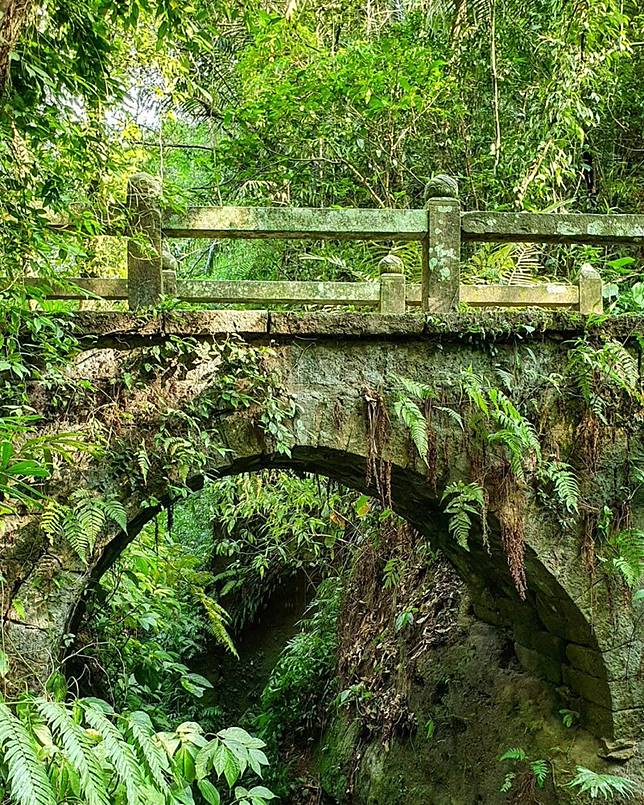 一路上有石階、泥土路與石橋,建於1918年的石磚拱形糯米橋,是早期獅山道路尚未開闢前,北埔、峨眉、南庄住民往來均會經過的橋樑,經歷過風雨的錘鍊,古樸的橋體有著歷史的厚重感,是走這條步道必定要朝聖的景點。