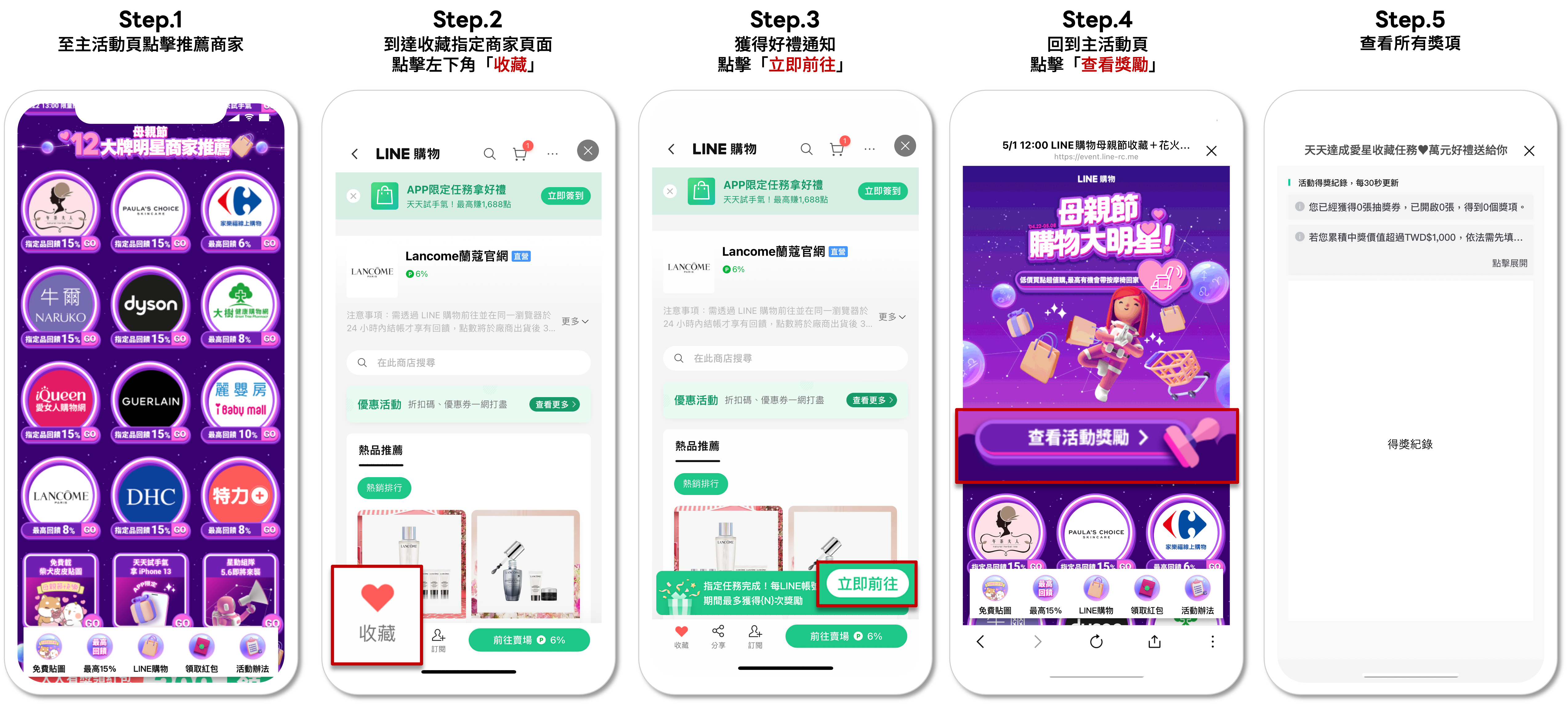 4. 因系統作業時間限制,若於活動期間封鎖「LINE購物」官方帳號,將無法收到獎勵訊息,且無法補發封鎖期間本可獲得之獎勵訊息,若獲得獎勵資格因此受影響,不得異議 。