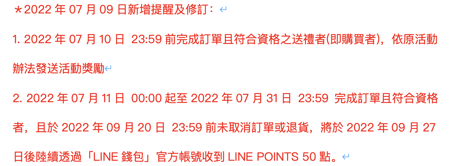 2. 本活動規定之「送禮」訂單其送禮者(即購買者)及收禮者需分別為不同LINE帳號方符合活動回饋資格。