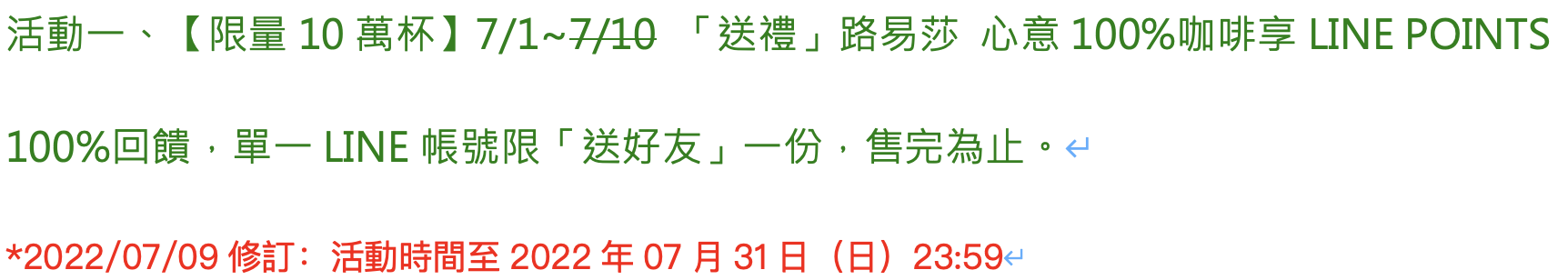 活動二、【限量4,200杯】7/5~8/15「購買/送禮」全家 心意100%咖啡享LINE POINTS 100%回饋,每天13:00開賣100杯,單一LINE帳號每天限「購買/送禮」一份,售完為止。