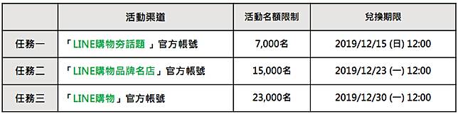 小提醒!每個任務卡兌換LINE POINTS的期限與名額皆不相同,請注意下方表格哦 ↓ ↓ ↓