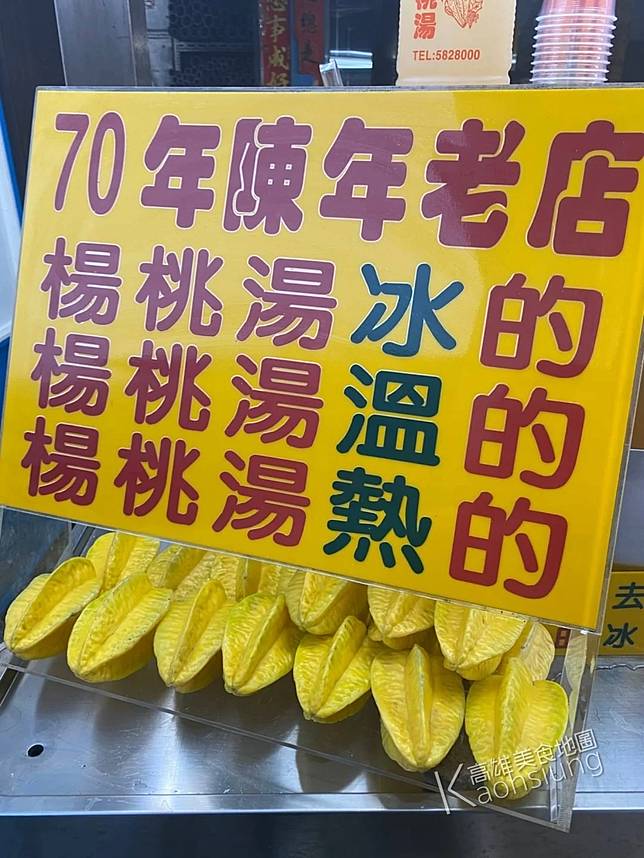 這間開業已有70年之久的永吉楊桃汁(看地圖),位在左營區的左營大路上,主賣楊桃汁,據網友分享目前這個位置是新地點,舊店的位置已經蓋新大樓了。店面還有販賣醃製過的楊桃和楊桃干及楊桃片,聽阿姨說可以加工成楊桃冰也很好吃,另外也有賣飯一整罐的楊桃汁濃縮汁,帶回去加水就可以飲用~