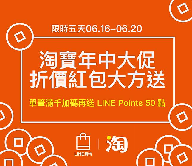 於活動期間內,點擊「LINE購物」廣告連結, 前往淘寶網站選購商品,即可於活動網站參加「登錄訂單賺點活動」(下稱「本活動」)。符合下方活動條件者,單筆訂單實際結帳金額滿千(新台幣)者,可獲得LINE Points 點數50點。