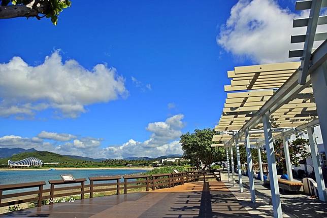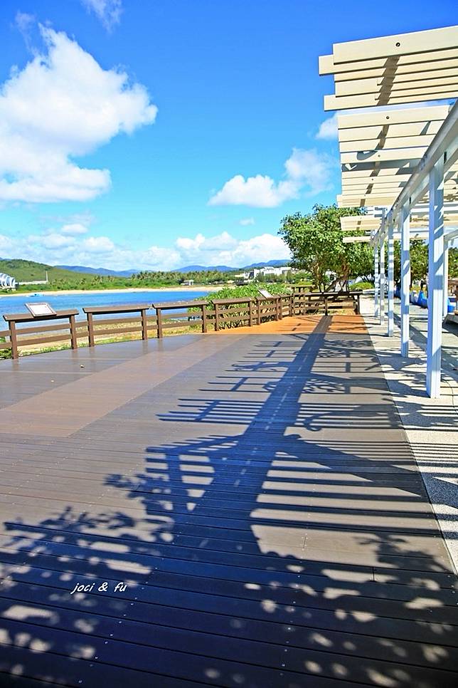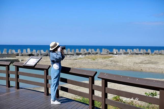 大約一兩年前觀景台翻新,有了個很具藍白地中海風的白涼亭、木平台和藍白相間的波浪的矮牆 ,讓整個景觀更美了,這裡有海風吹,其實沒想像中那麼炙熱,視野是既療癒又靜心的那種,好適合發呆放空
