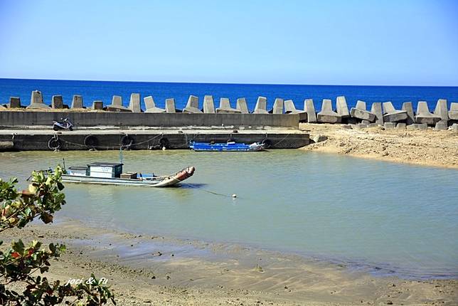 滿沙灘都是超美的白色珊瑚石,這裡有原始自然的港灣與碩果僅存的傳統漁船停泊方式,由於海灣靠岸邊水淺,平時船停放在海灣較深水面上, 膠筏與海岸之間就要靠小型的接駁膠筏來聯繫,兩者之間繫著繩索,再由人力拉動,如此往來船與岸之間。