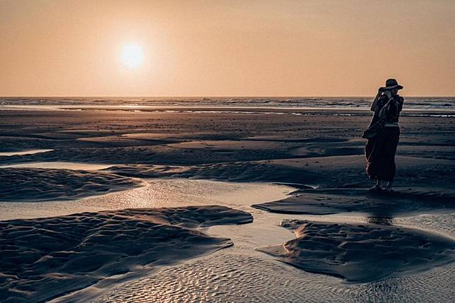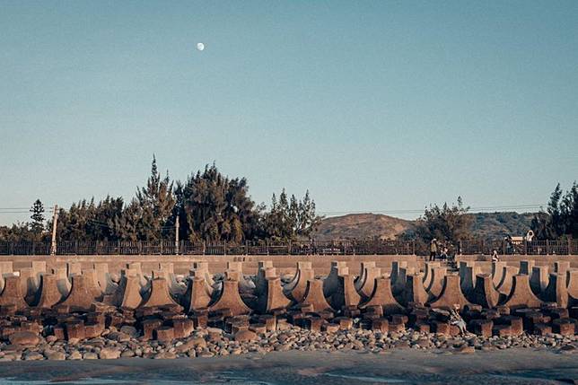 新埔的海邊很樸實,偶有人三三兩兩的路過,各自遙望著海的另一邊,迎接著黃昏的到來,太陽漸漸從天空爬下,又一點一點的藏進大海,時間彷彿靜止一般,讓人不忍打破這份恬靜,默默地感受大海給予人們的平靜寧和。