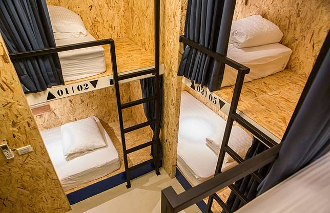 《小森見晴》提供多元房型,從雙人房、團體四人房、女生四人房到六人混合房。床組全為實木打造,上下舖則是特別手工訂製,極為講究。