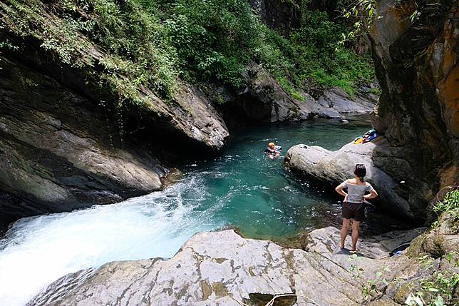 抵達目的地之後我們也是驚訝了一下(我們好像每次到目的地都會驚訝!?),雖然它沒有像茂林多納的鬼斧神工峽谷這樣的氣勢,但是因為峽谷、深潭、小瀑布再加上清澈見底的溪流,還是令人意猶未盡,不管看幾次都不會覺得膩。有戴蛙鏡的話還可以潛下去看魚唷~都還蠻大隻的!