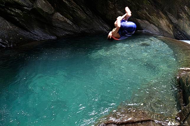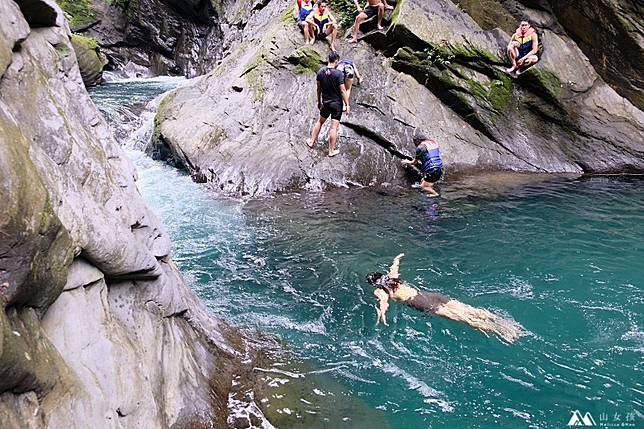 來到這邊就算不會跳水只是泡在水裡也覺得舒適,不過山水玩起來真的比較冷,休息太久身體熱起來之後就會比較不想再下去了。