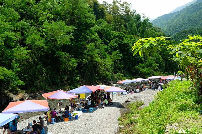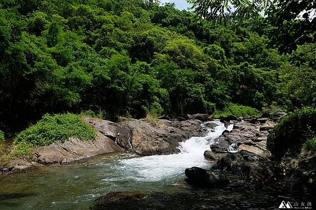 ▲從停車場往上游走大約10分鐘,可以到另一個淺灘,這邊也有一些比較深的地方,可以看到也有小朋友會在這邊跳水。