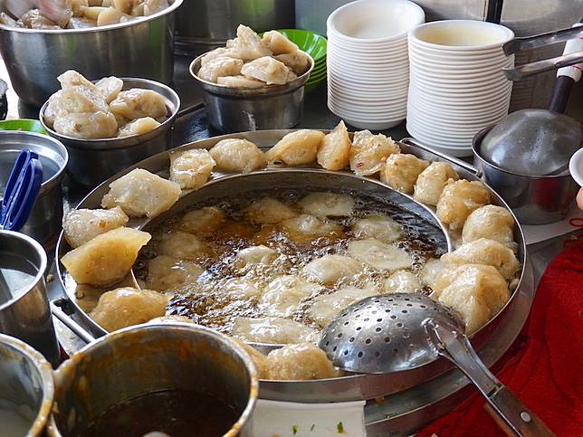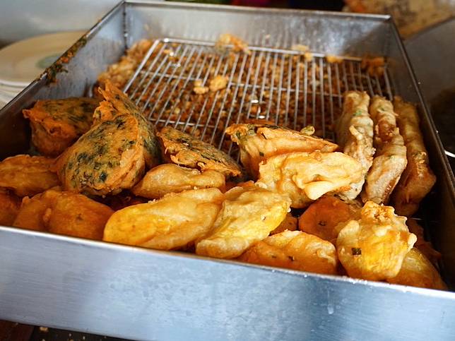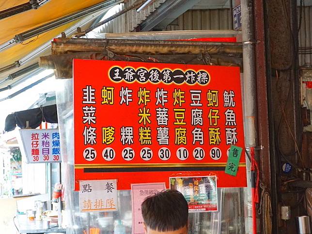 第一市場的人氣小吃【王爺宮後第一炸粿】有販賣蚵嗲、炸粿、炸米糕、炸蕃薯、韭菜條…等,每一樣炸物都只需要銅板價錢就可以吃到現炸酥脆的好滋味。