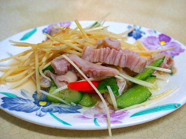 ▲老闆娘強力推薦的人氣商品-涼拌脆腸 $30,將黃瓜、脆腸、辣椒一起醃製做成涼拌小菜,吃起來清脆爽口,帶點小辣的味道十分開胃。