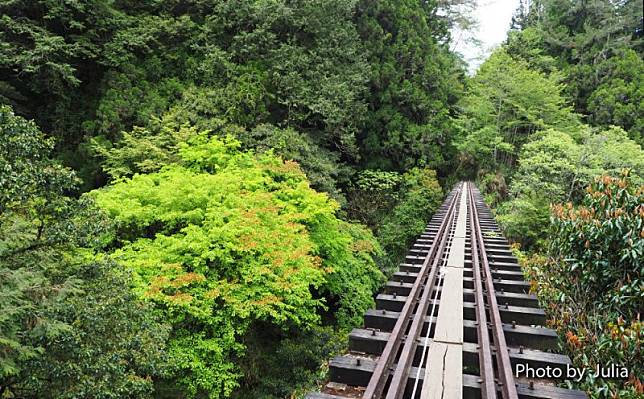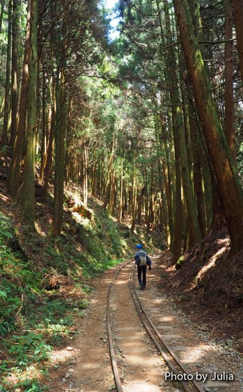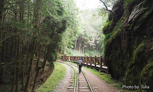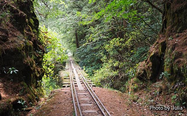 ↓ 沿著鐵軌輕鬆自在走在古木參天的蓊鬱林間…