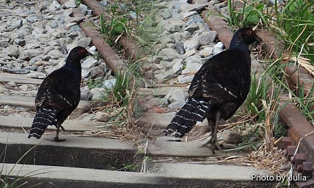 接近1號隧道口時發現地上有黑影… 走進一看,原來是帝雉在覓食啊…
