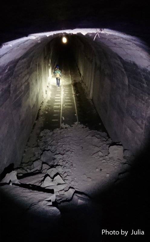 ↓ 接著要進入2號隧道(長度414m),這是貫穿塔山最長的一座隧道,裡面有漂亮的五邊形木構支撐…