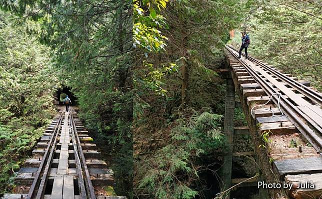 *由於此路線中段有多處崩塌,前往的朋友要注意安全!基本上沿鐵軌前行,海拔起伏不大,走來非常輕鬆,只是會經過十幾座高架橋,有懼高症的朋友要做好心理建設!