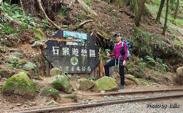 *上述行程時間僅供參考,請斟酌個人腳程。基本上,從[阿里山閣大飯店]至[石猴車站]來回,正常速度約需5.5~6小時。08:15從阿里山閣大飯店門口出發,沿鐵軌前行…(由於沼平車站至十字分道前的鐵軌,仍有祝山線火車行駛,經確認該時間無火車經過,我們才會沿鐵軌走;不然必須左下至姐妹潭,沿塔山步道走至大塔山登山口木平台後才能轉入眠月線,這樣走會多花一些時間…)