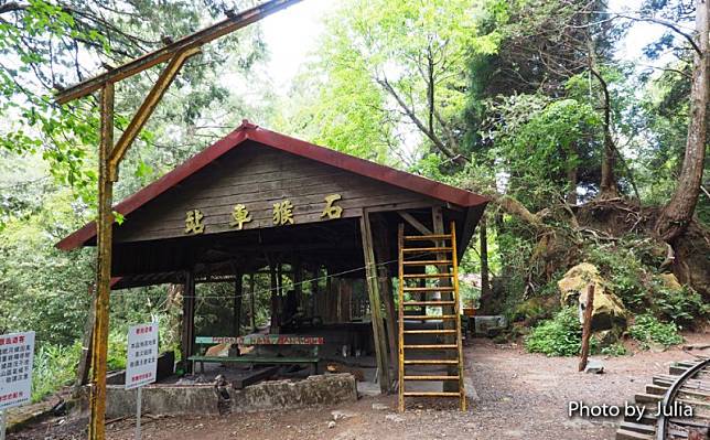 1115石猴車站—1155[一葉蘭自然保留區]標示處(午餐)1220—1230塔山車站—1237第二明隧道—1247第一明隧道(崩塌處)—1310鐵軌十字分道—1330阿里山閣大飯店