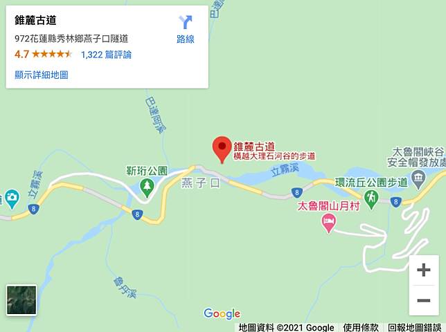 2、燕子口:於錐麓古道終點燕子口的「燕子口站」搭乘花蓮客運,返回花蓮火車站。
