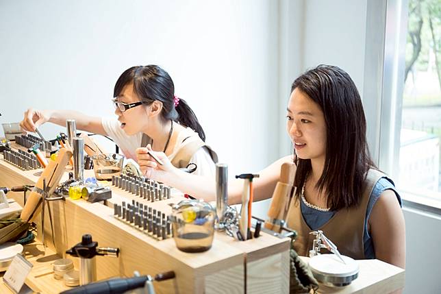 以覺學的課程不做套餐公式化的教學,而是教授正宗傳統的金工技法,比起機器製作,純手工製作出的作品更具有一層生命的溫度,2 ~ 4 人的小班制設計,也讓學習者保有高彈性度的學習空間。