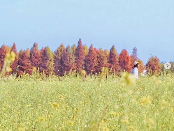 大片落羽松林有好幾區,周邊也有好幾區油菜花田花海景象,很能夠拍出媲美明信片的田園風景照!雖然假日拍攝的人多,但因為樹林花海面積也廣闊,走走拍拍也可以保持社交距離喔~
