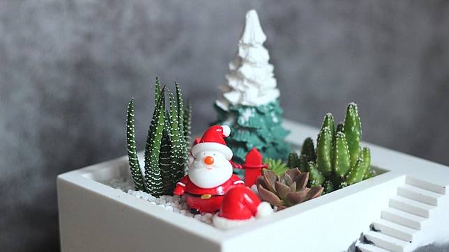 想要讓書桌、客廳充滿冬天的氣氛嗎?只要用一個多肉小植栽就可以辦到了!運用聖誕老人的裝飾小物搭配雪景及小多肉們,就可以輕鬆打造聖誕氛圍了~
