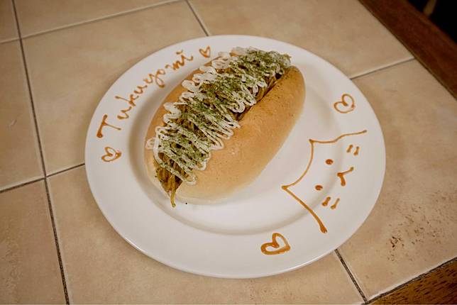 《血小板炒麵麵包》可是月讀必點招牌炒麵麵包有著淡淡果香,加上可愛番茄醬插圖,視覺與味覺雙重享受!