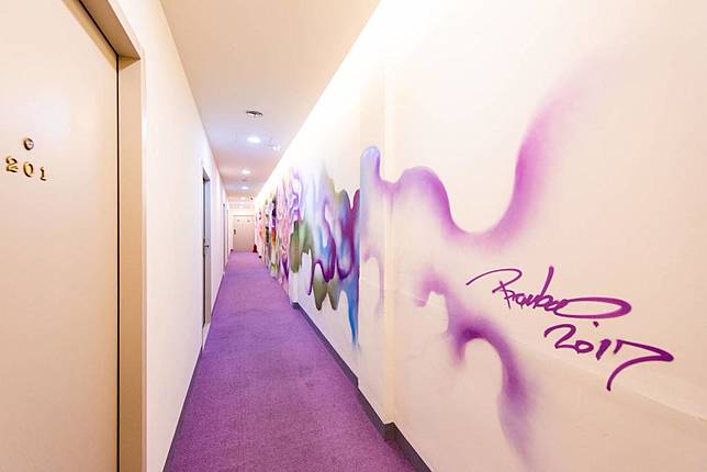 如果以為星行旅只有外牆值得打卡拍照,那就錯了,老闆的用心絕對要深入星行旅才會知道。進入星行旅,住宿處的走廊上可是有各種不同風格的彩繪作品,來到這裡可以欣賞到世界各地的藝術家創作。