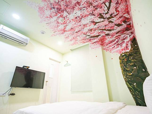 ▼喜歡賞櫻嗎?開滿的櫻花樹就在房間裡,紛紛落下的花瓣把浪漫的氛圍搬進房間內。