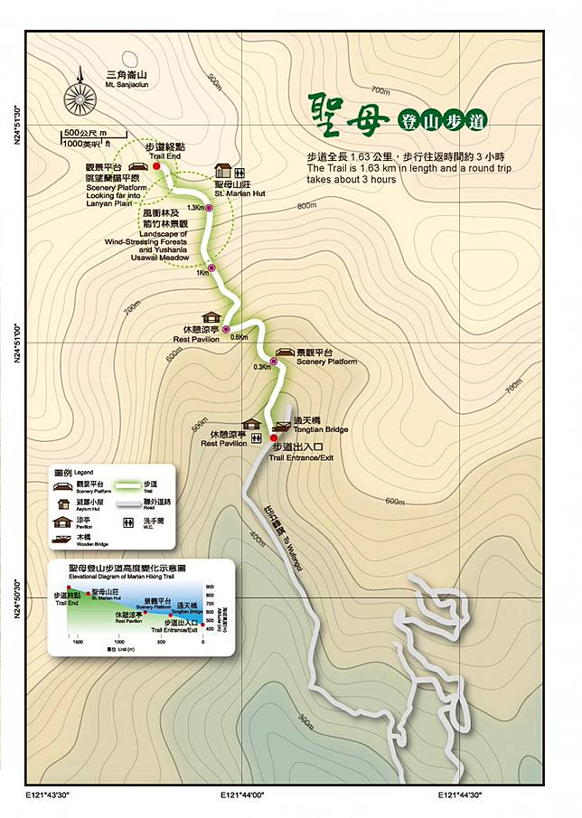 聖母登山步道路線圖。(圖/林務局台灣山林悠遊網)