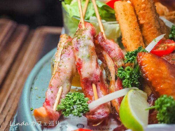 培根雞肉串超級特別,吃起來豐富有層次,創意的組合讓整個拼盤很有亮眼,牽絲的起司條也是必吃呀~~~