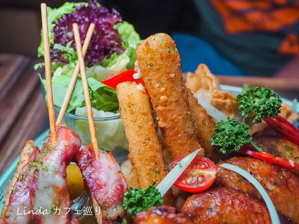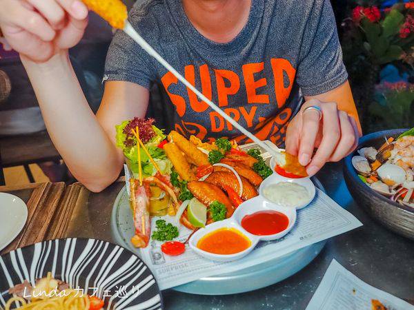 很推薦這種利用鮮甜的海味,製作的創意料理,再搭配炸物等食材,比較解油膩,而且沙拉的份量非常多。