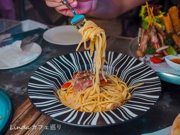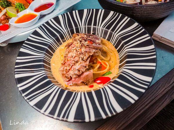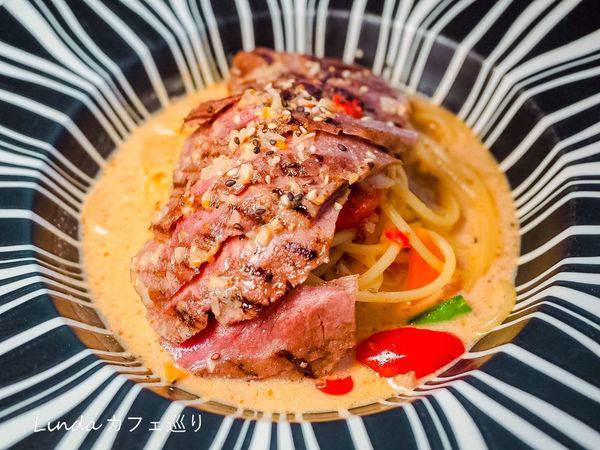 招牌「麻奶牛肉義大利麵」帶有一點微辣,使整體的麵條醬汁令人更開胃