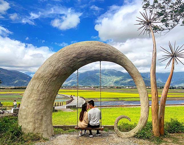 ● 天堂鞦韆:月牙造型的鞦韆就有S型的萬新道路(又稱天堂路)盡頭,騎著自行車來到這裡後,不妨下車拍張照吧,古樸的鞦韆對映著不論是翠綠或者金黃的稻田,同樣都美不勝收。